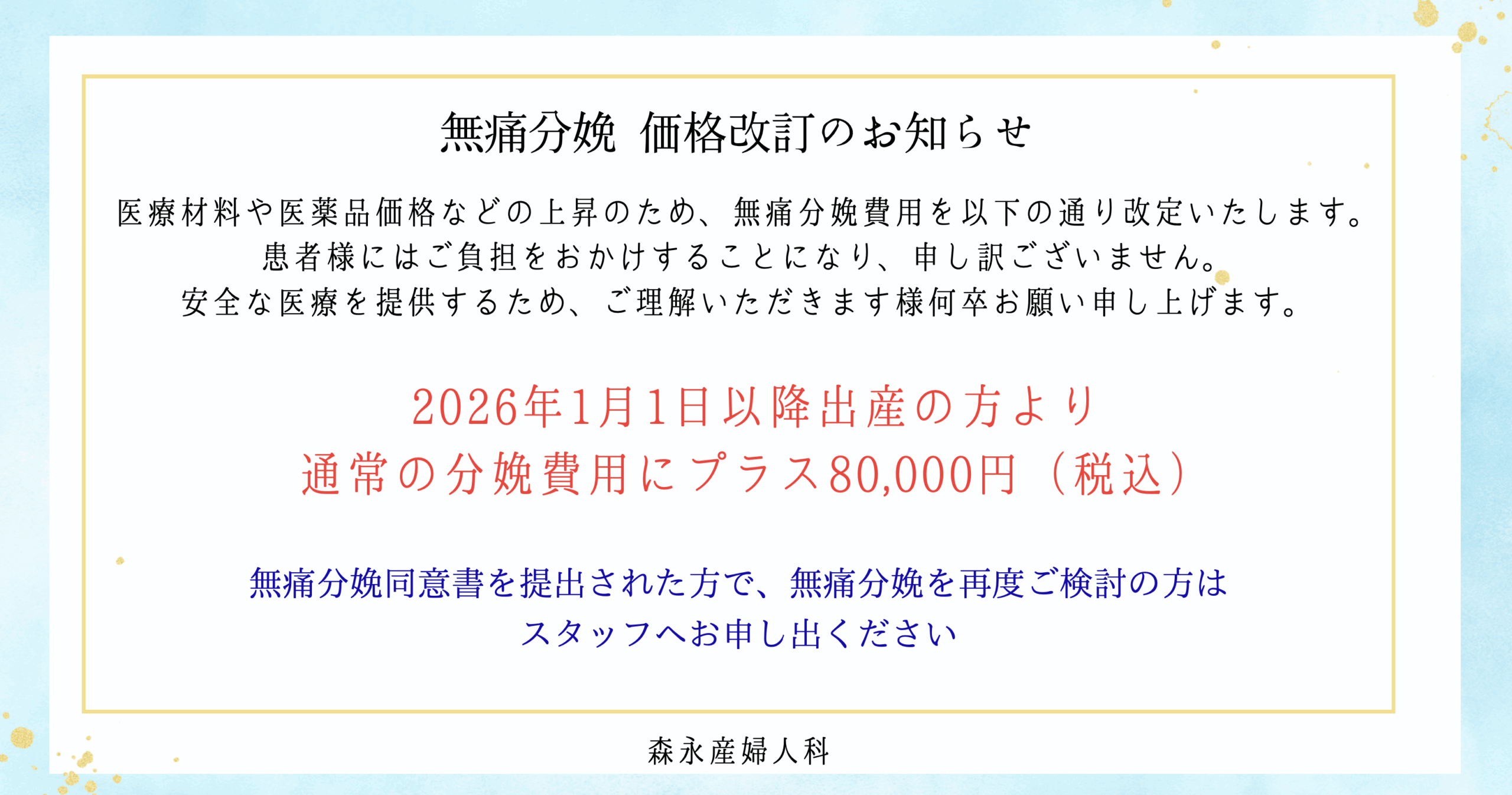 Blog 無痛分娩 価格改訂のお知らせ